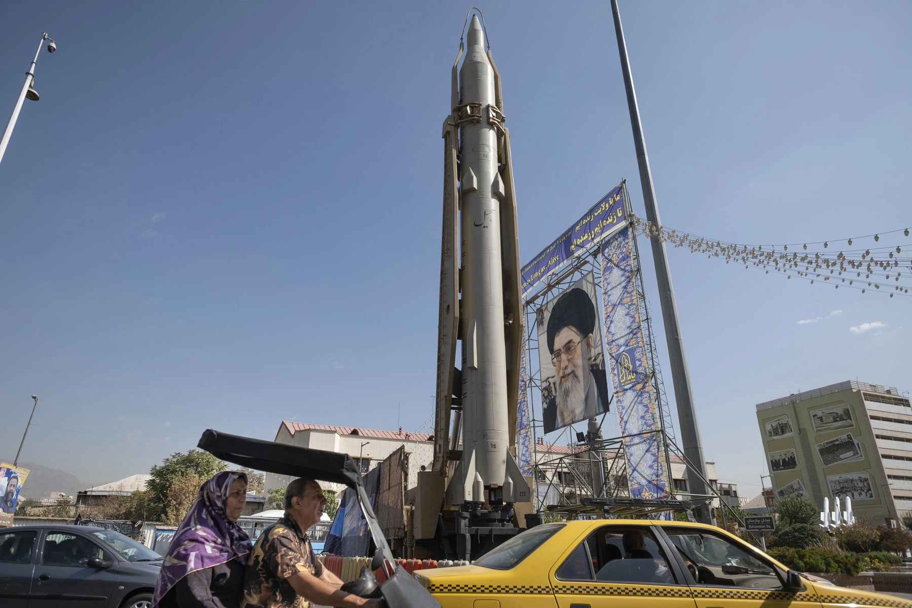 Фото: Баллистическая ракета на фоне портета Али Хаменеи в Тегеране. 2023 год. Morteza Nikoubazl via Reuters Connect